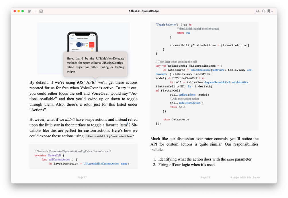 The book series in .pdf and .epub formats. Xcode code sample project. Discord server access. Free updates going forward.